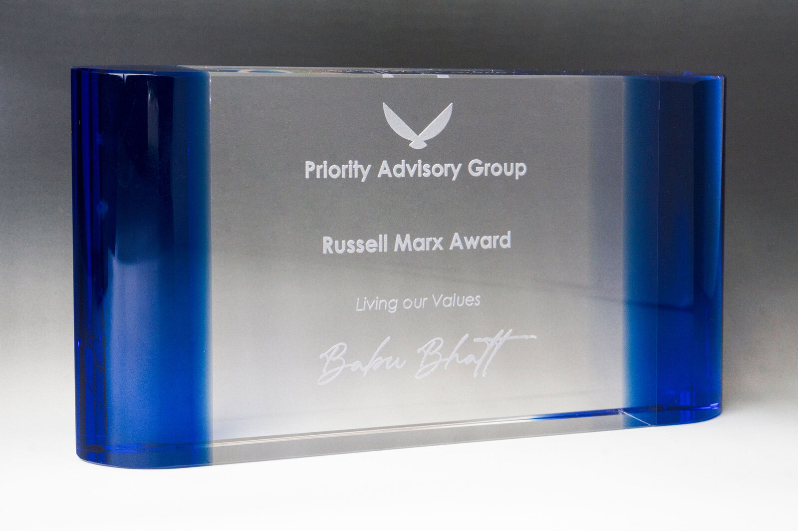 1377BBU: Crystal-Vertical Curved Block with Coloured Plinth